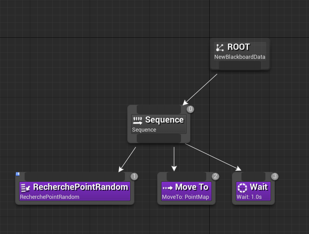 Pour animer cet ennemi, nous avons créé un arbre de comportement ainsi que des scripts de tâches à réaliser:
